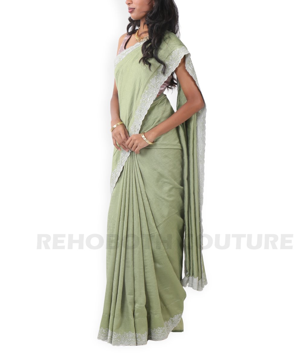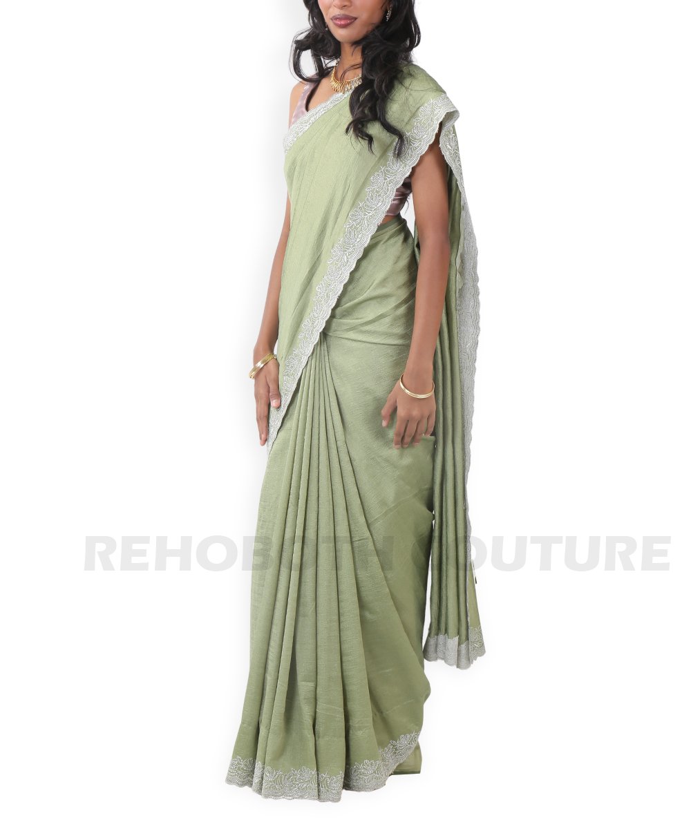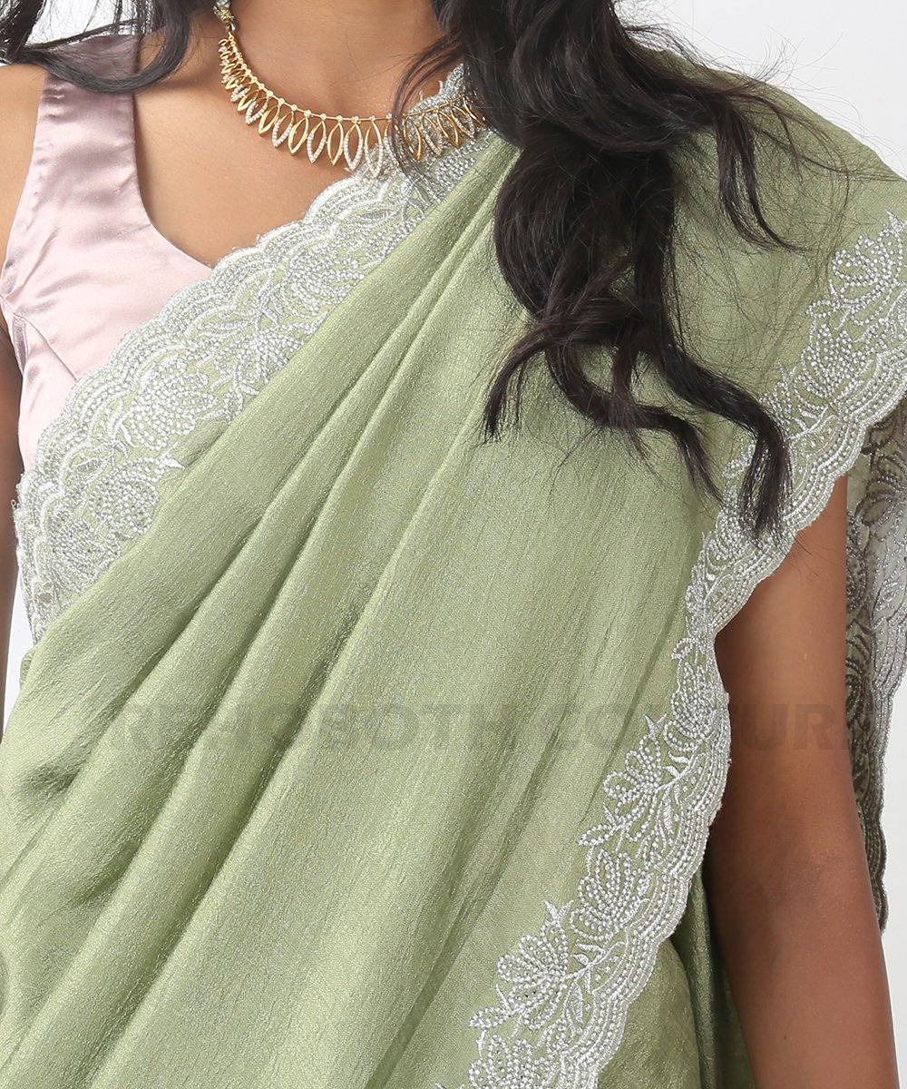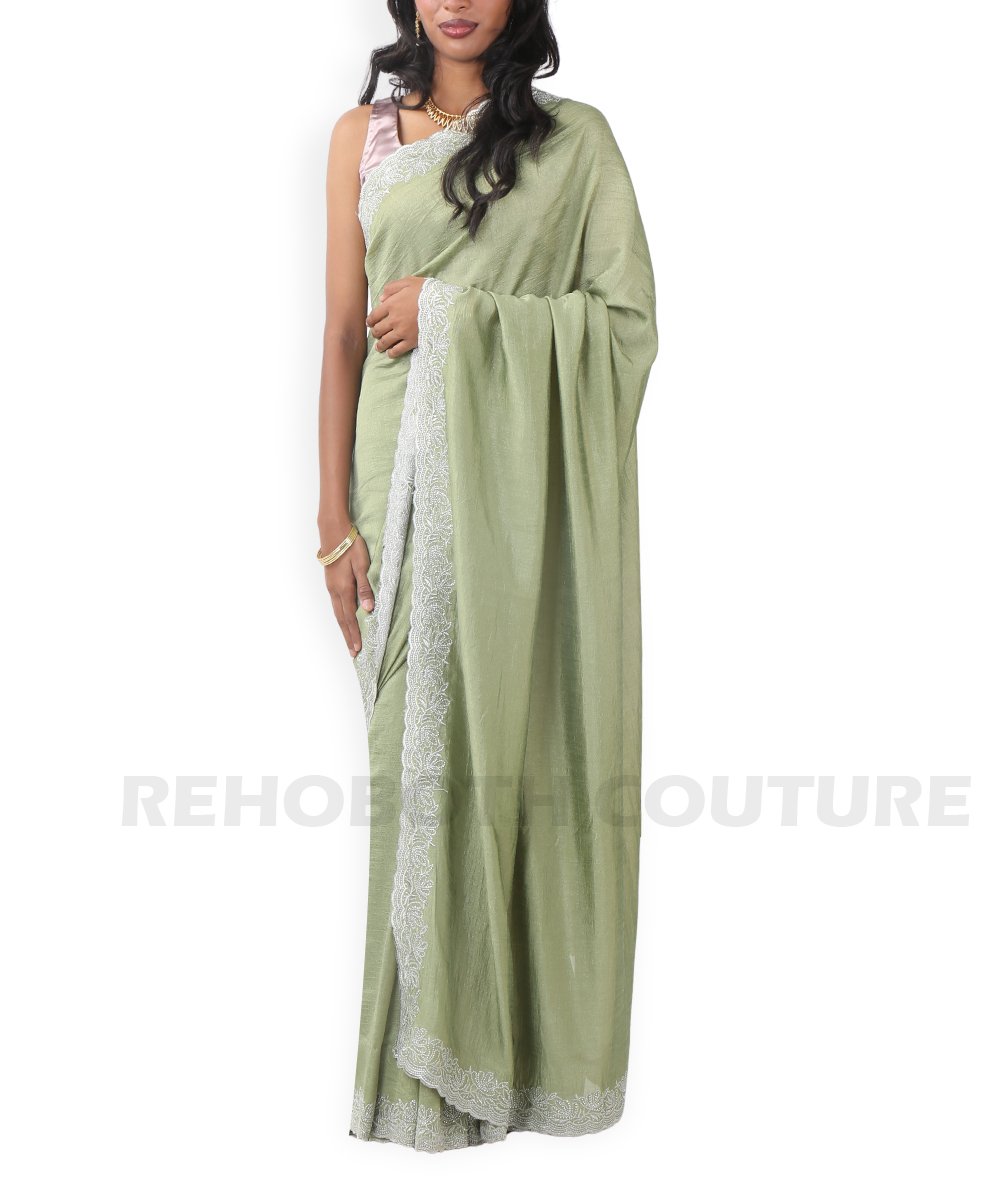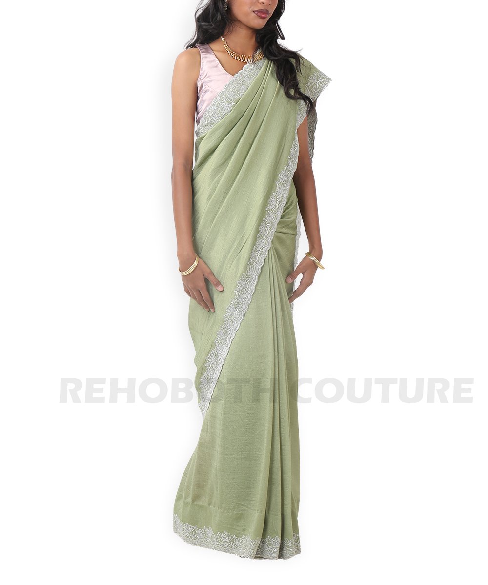 Light green Jimmy saree with scallop border.