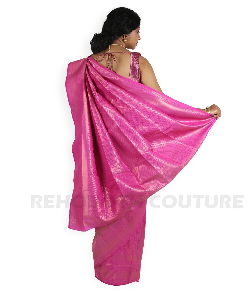 Magenta-purple Banarasi silk with Mughal motifs.